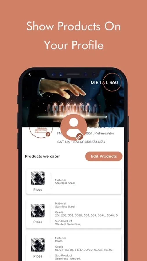 With Metal 360 App Traders can connect with Stockists and Suppliers, to fulfill their business requirements. Explore the widest range of metal products like pipes, tubes, flanges, fasteners, pipe fittings, sheets, plates, coils, etc. from genuine Stockists for your sourcing requirements.