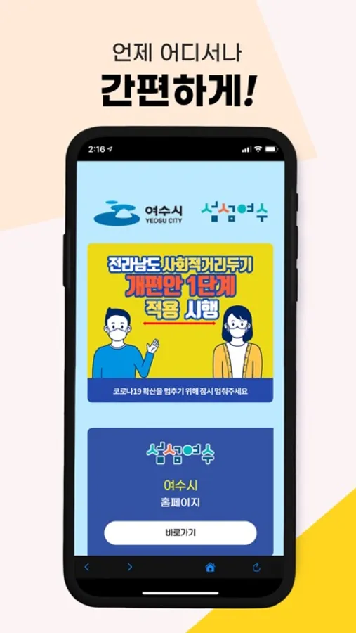 - 여수시청 홈페이지에서 서비스되는 정보를 모바일로 이용할 수 있습니다.