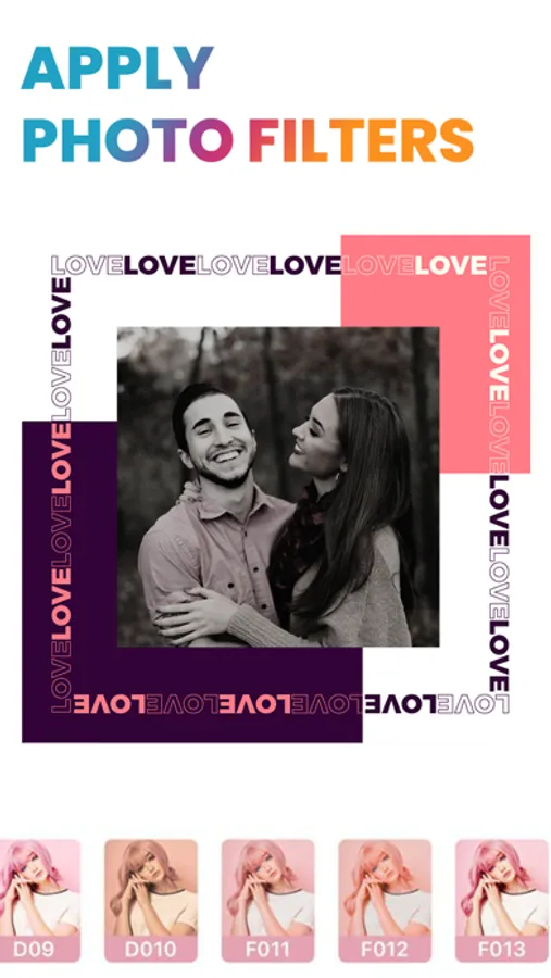 This app provides a number of romantic templates as well as art text samples and many types of frames, which is convenient to customize your images by editing the templates with your pictures.