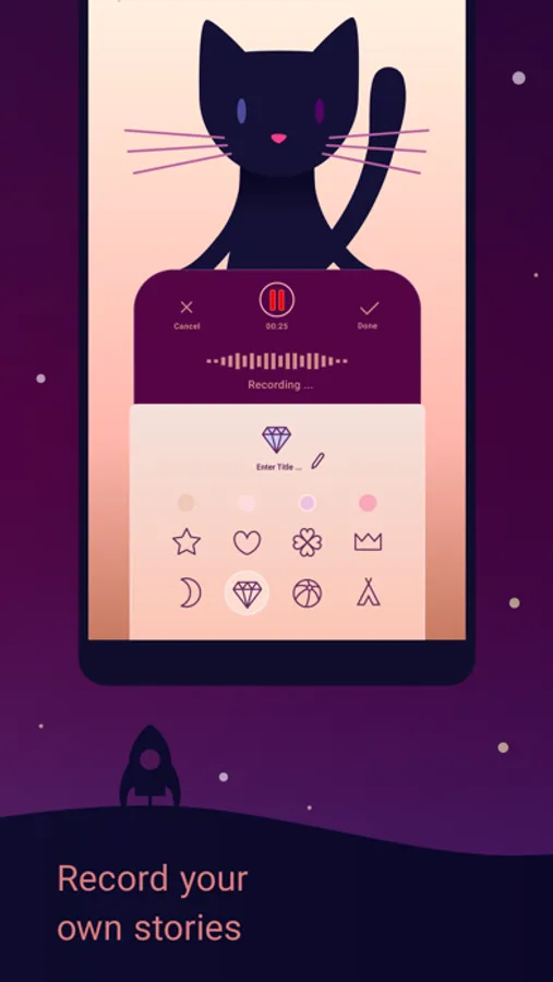 Record your own story and let your child fall asleep with the familiar sound of your voice.