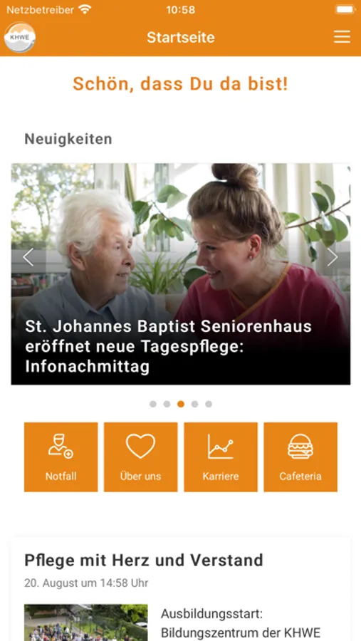Diese App bietet für Patienten, Angehörige, Kunden oder andere Interessenten aktuelle Informationen von und über die Katholische Hospitalvereinigung Weser-Egge (KHWE). Informieren Sie sich über den größten Arbeitgeber des Kreises Höxter und klicken sich durch unser Karriere-Portal. Darüber hinaus erhalten Sie wichtige Kontakte für den Notfall, die aktuellen Speisepläne der Cafeterien unserer Krankenhäuser und Informationen zu Veranstaltungen oder dem umfangreichen Fortbildungsprogramm unseres Bildungszentrums.