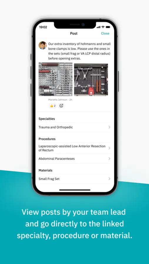 • View instructions on surgical equipment, tools, and materials, with visual clips and images