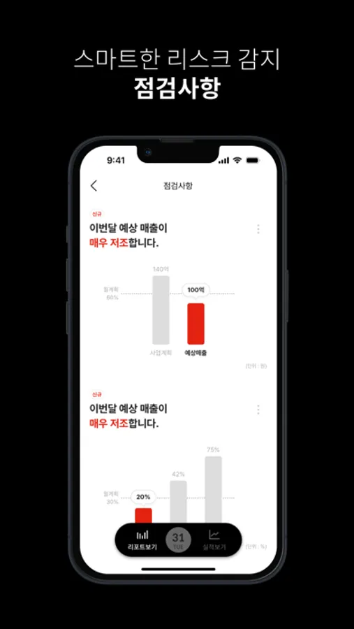 ● 점검사항 : 중요 관리지표에 대해 매일 위험신호 및 특이사항을 감지하여 알려드립니다.