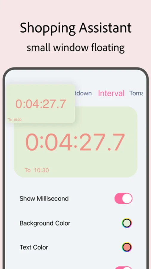 1. Online shopping assistant, a small window on the shopping app displays a millisecond clock or an hourly countdown.