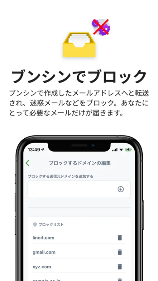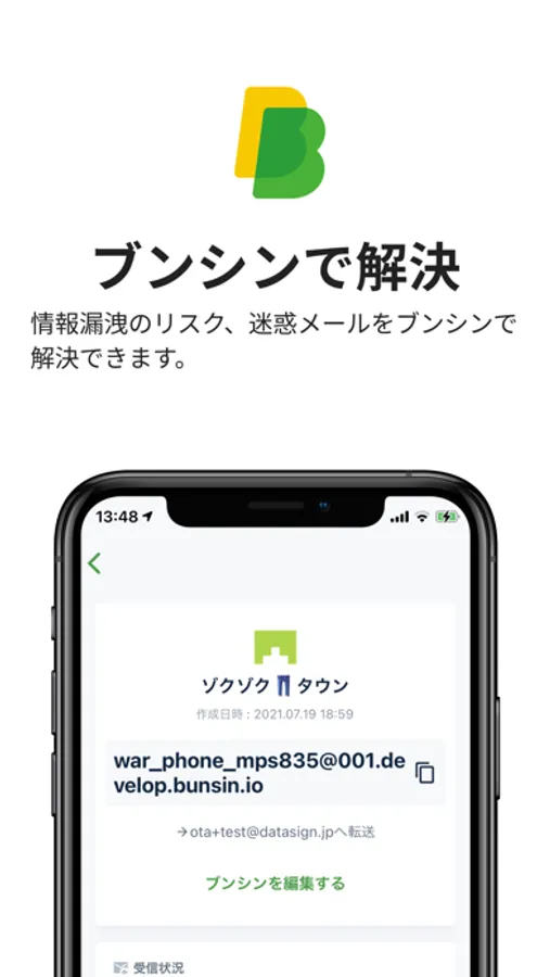 ブンシンメールを登録先ごとに発行して利用し、必要なくなったらブンシンを削除するだけ!
