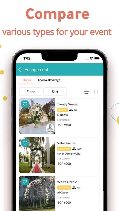 The perfect place to get a confirmed reservation for your occasions by searching and comparing among the best offers of halls, restaurants, food services, parties, outings easily with Evntoo's various choices between different places and multiple services.