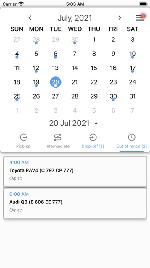 Mobile app "WS. Carrent" is an add-on to the desktop app "WS. Carrent" to manage rentals and reserves, client base and company resources, as well as financing.