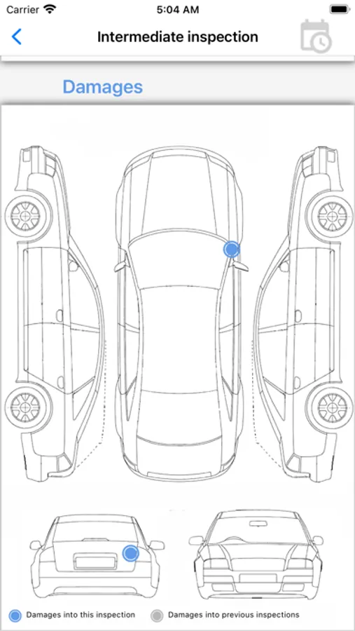 During the inspection, car state info is entered: mileage, cleanliness and a list of new damages. You can also see information about past damage. Photos are added to inspections and damages directly from the device camera. Upon completion of the inspection, the act is signed with a graphic signature.