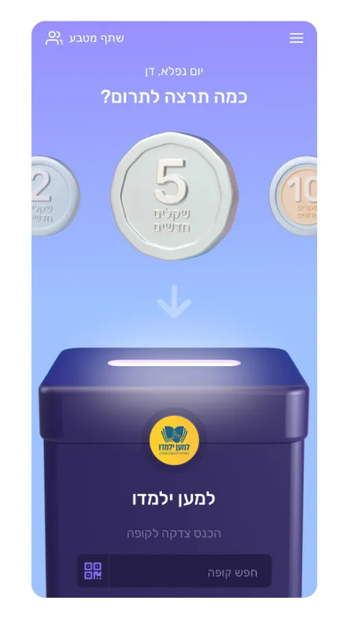 PushCoins הינה קופת צדקה דיגיטלית חדשנית וידידותית בה ניתן לתרום מטבעות של כסף קטן למוסד הצדקה האהוב עליך בכל מקום ובכל זמן.