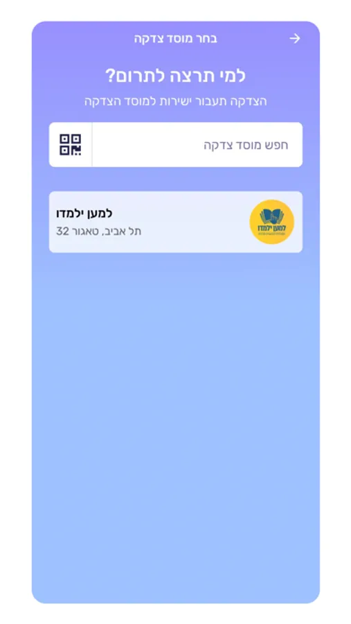 ניתן לאתר מוסדות צדקה בקלות באמצעות סריקת קוד Qr או באמצעות חיפוש שם מוסד הצדקה.