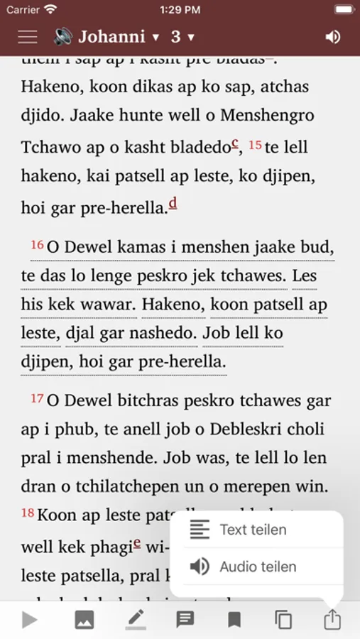 Sie können die Texte der Romanes-Bibel lesen und außerdem die Bücher des Neuen Testaments von einem Muttersprachler gelesen hören.