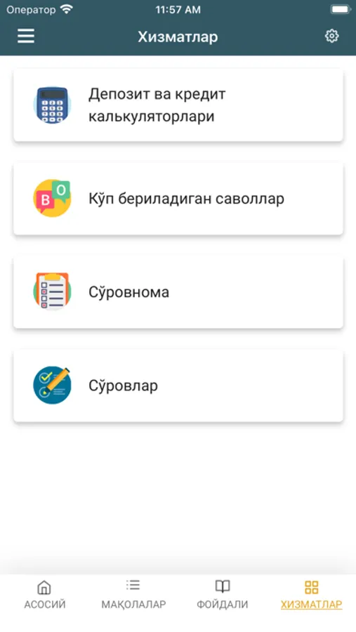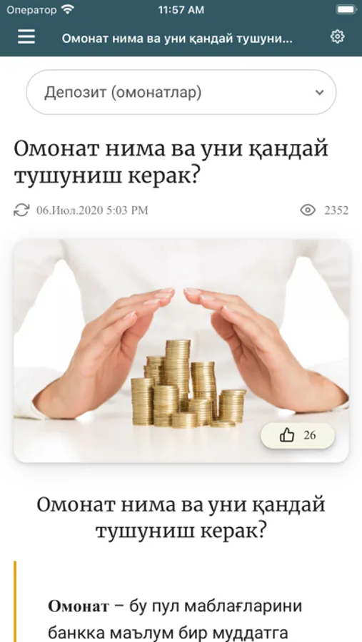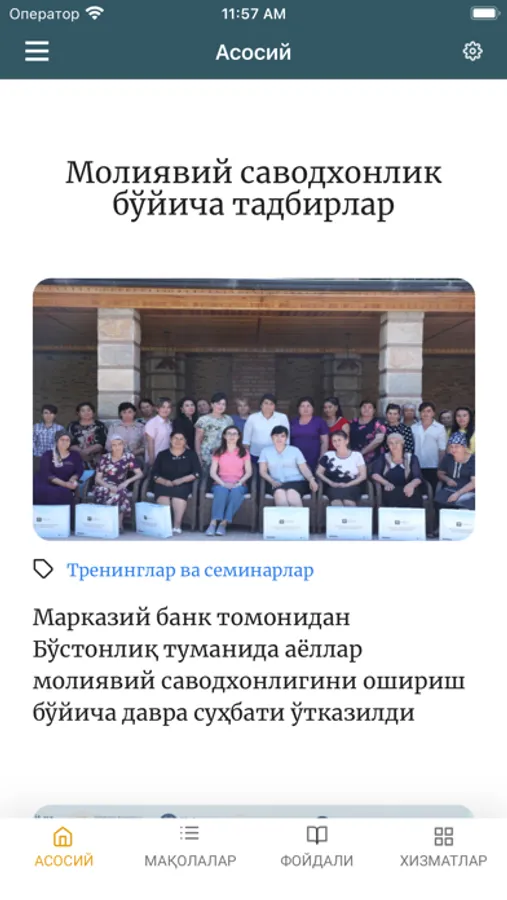 Теперь вся информация и интерактивные услуги образовательного веб-сайта по финансовой грамотности Центрального банка Республики Узбекистан в одном приложении! Мобильное приложение было разработано с учетом всех потребностей пользователей и представлено в 3 языковых версиях: на узбекском (кириллица и латиница) и русском.