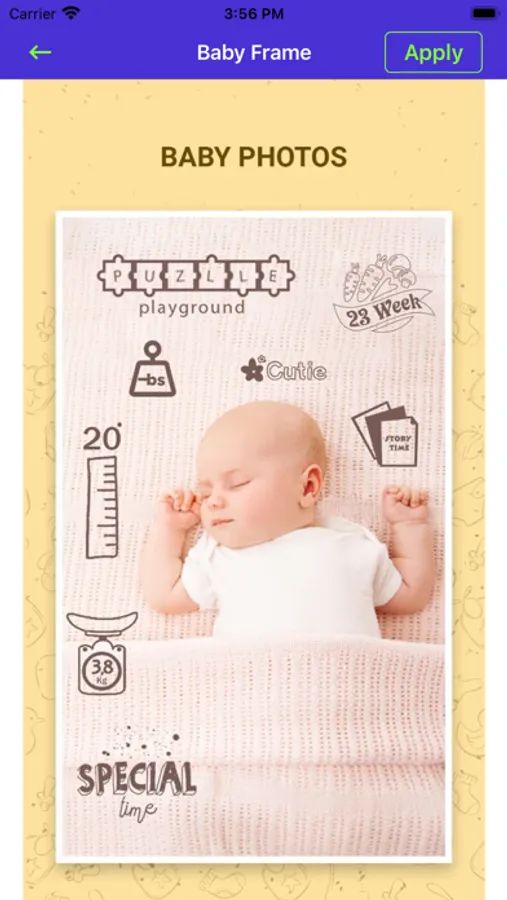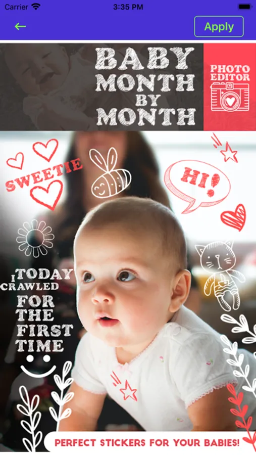 New moms & expectant parents can easily add doodles, artworks,texts, captions,quotes on their cute baby's photo and share it via Instagram, Facebook, Twitter. You can also apply magical filters to make adorable memories with your baby.