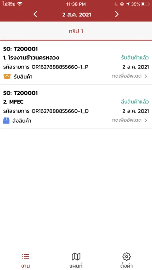 • Check-In สถานะการรับส่งสินค้าใหนหลายสถานะ