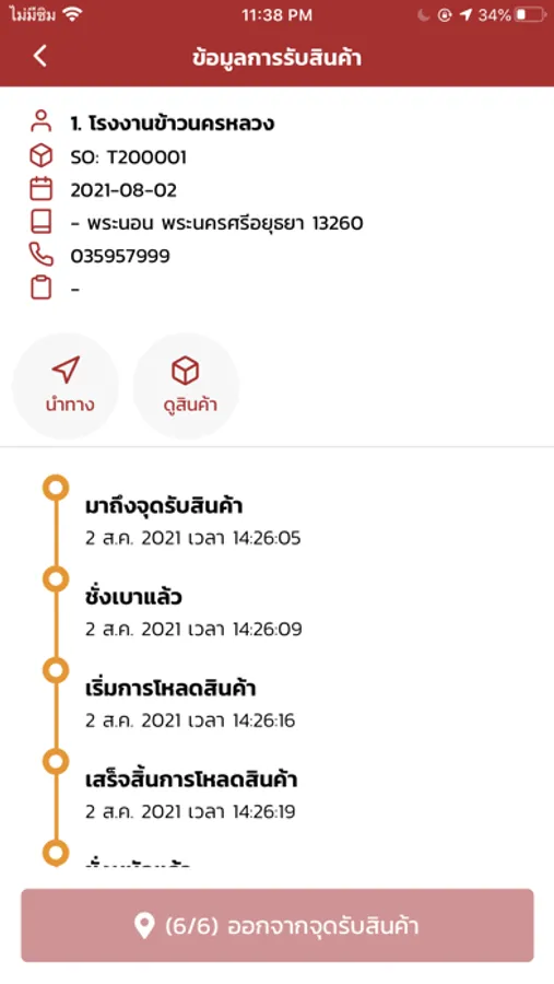 • แสดงรายละเอียดของ Order ที่ต้องทำการขนส่ง