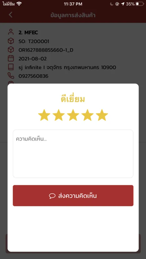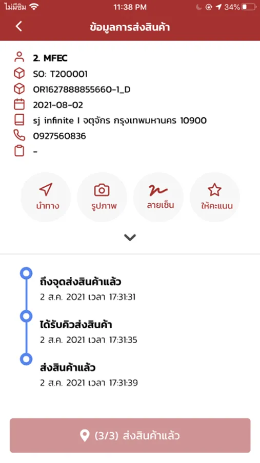 • ถ่ายรูปและเซ็นเพื่อยืนยันการส่งสินค้า
