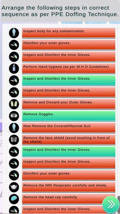 In this game, all the items of PPE that are to be put on during donning and doffing procedures will be displayed and the players have to select the correct items from the inventory in a stepwise manner.