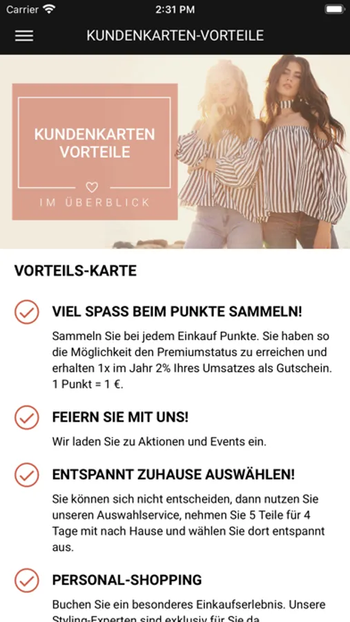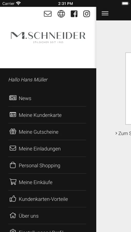 1. Ein Muss für alle Mode-Fans: Mit der M. Schneider App haben Sie alle Vorteile als M. Schneider Kunde und Ihre digitale Kundenkarte immer auf Ihrem Smartphone dabei.