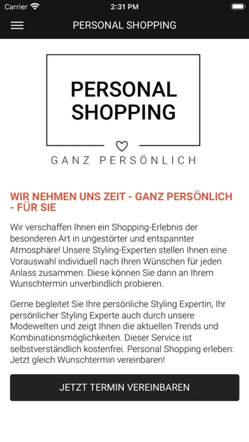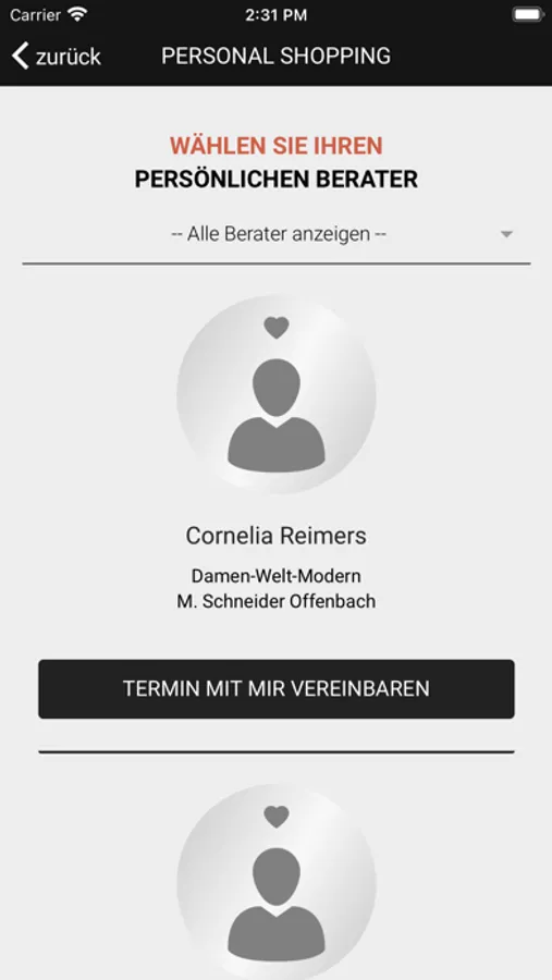 4. Personal Shopping: Sie wünschen sich exklusive Beratung? Wählen Sie einfach via App Ihren Wunschberater aus und vereinbaren Sie Ihren persönlichen Termin.