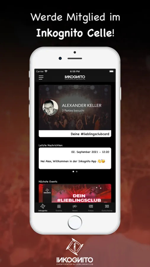 Lade dir unsere #lieblingsclub app und werde Mitglied im Inkognito Celle.