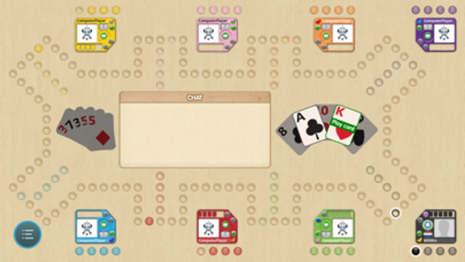 First of all, the game itself is super fun to play! Some games may get boring after a while, but not Keezers! Keezers will keep you entertained forever, because you need both a bit of old fashioned good luck AND a strategic mastermind to win the game. Another great feature of this game is that you can play in different combinations: by yourself, against a computerbot, against or with other players and even with or against your very own friends! Each game can have up to 8 different players!It is also possible to play in teams to add even more excitement to the game! When you’re playing in teams you have to get your own pawns to their homebase first, before you can help your teammate move forward with their pawns using your own cards. Same amount of cards, double the fun!
