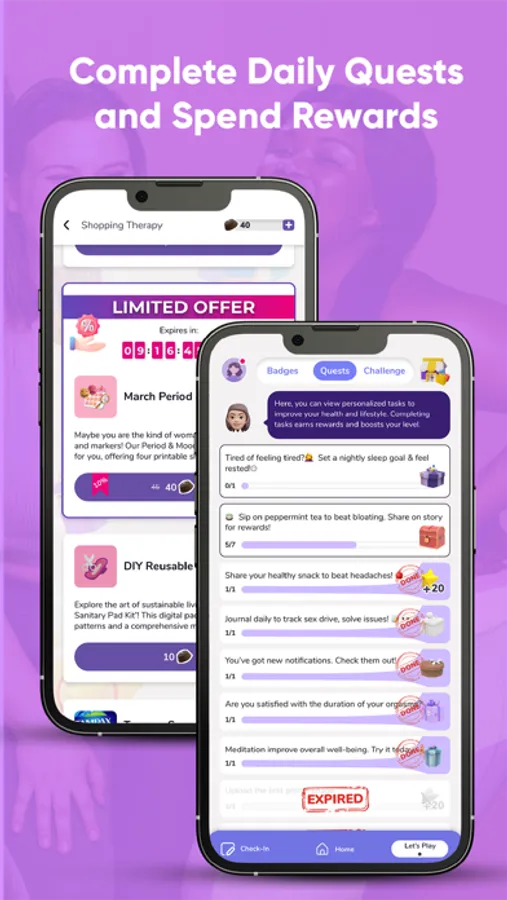 Stay engaged with our gamified features, where you can complete health challenges and quests to improve pelvic health habits.