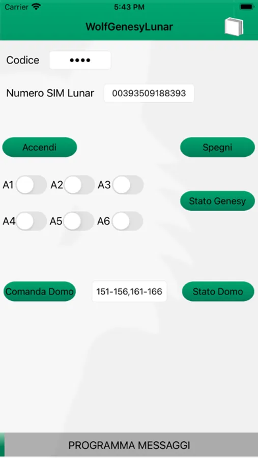 App dedicata alla gestione e programmazione del combinatore telefonico WOLFSAFETY LUNAR PRO nella versione Genesy. Compatibile con le reti 4G/3G/2G (GSM/GPRS/EDGE/HSPA+/UMTS).