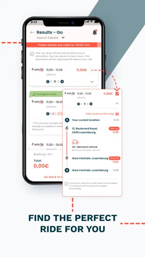 You can check previously booked or upcoming rides in the My Rides section, and view in detail the ride route and duration, as well as where you should be picked up and dropped off.