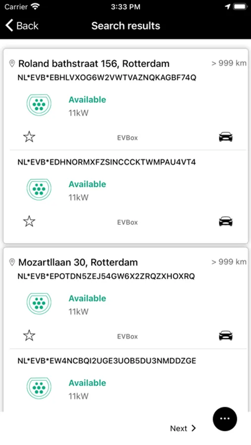 Search by city, zip code or charging station number. Use the search list for an overview of the charging stations that are currently available to you.