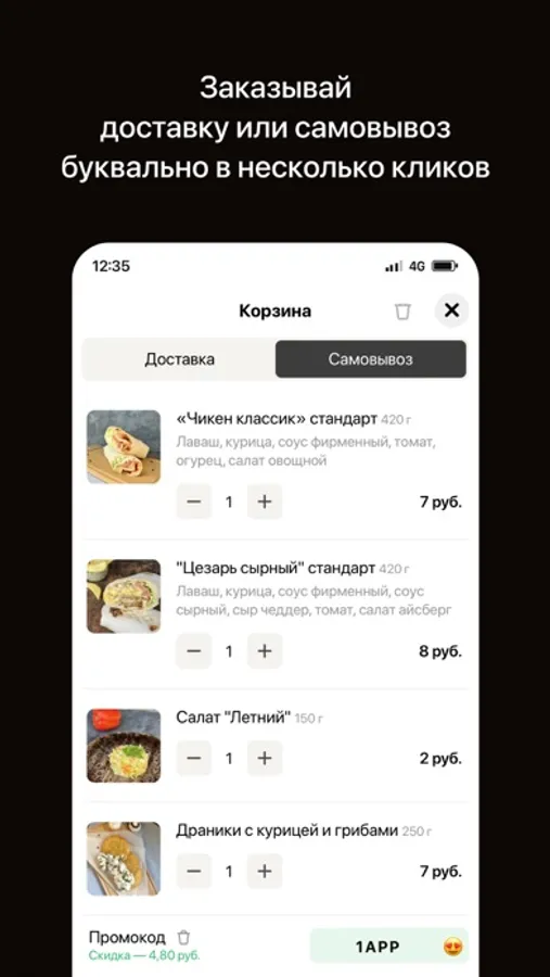 — Быстрый заказ с мгновенным подтверждением через приложение.