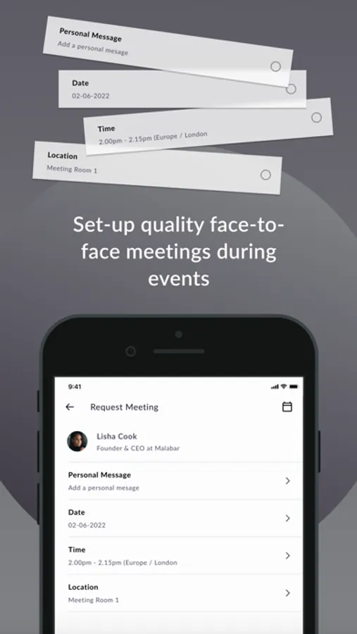 - Connect and book meetings directly with attendees, sponsors, and exhibitors