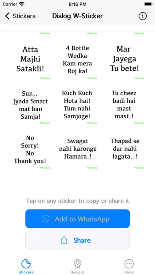 From Wsticker app you can add new stickers of quotes, messages in your WhatsApp panel.