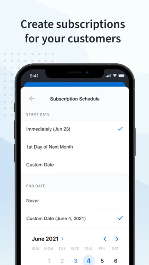 Save time spent tracking down customers for their payment information by storing customer cards on file. Use a card on file to charge customers for one-time purchases, settle an invoice or create a subscription, all from your mobile device.