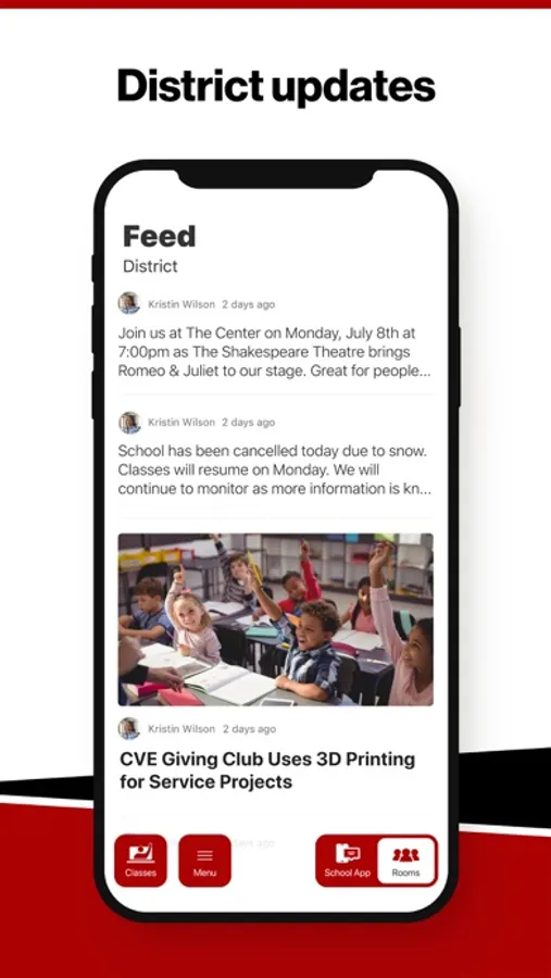In the Live Feed is where you'll find updates from the administration about what's going on in the district right now. Whether that's celebrating a student's success, or reminding you about an upcoming deadline.
