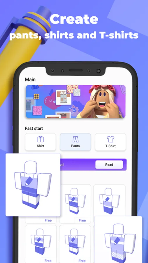 Don't know any special programs? No problem, just use your phone and this editor and create as many clothes as you want!