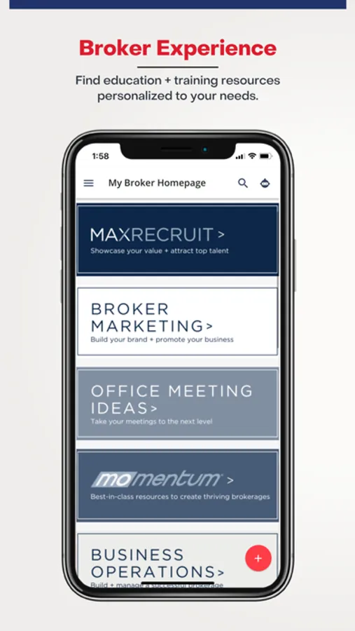 RE/MAX affiliates will login to the app using their MAX/Center credentials to access an educational experience tailored to each region within the RE/MAX network.