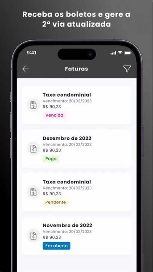 BOLETOS: Nossos problemas de envio com a taxa condominial serão resolvidos com o aplicativo. Receba e com apenas 1 clique copie o código de barra para pagar em seu Internet Banking. Venceu? Sem problemas: gere a 2ª via e pague na hora! Chega de solicitações não atendidas, demora no envio ou preocupação com sua taxa.