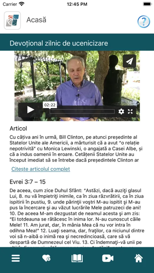 Aplicația conține mai multe devoționale zilnice împreună cu diferite texte biblice.