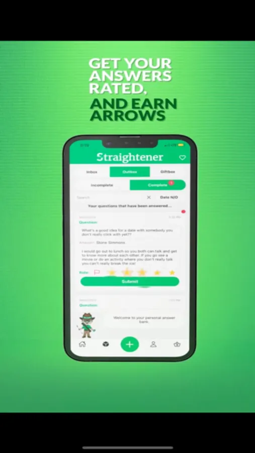 Straightener provides its users a personalized experience when finding answers to all of their questions. Users ask questions anonymously with the intent of receiving an honest, detailed answer as quickly as possible. All interactions are privately 1 to 1 unless both users mutually agree to share to the home page. Answers are rewarded with arrows, which can be used in the store for a reward of the user's choice.