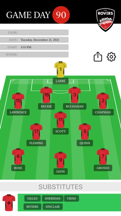 Game Day 90 is an app for soccer coaches to create a starting line up They can also distribute the line up to the team using an eye-pleasing visual graphic format everyone will understand and enjoy.
