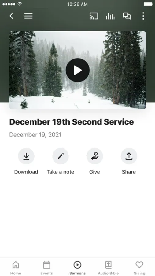 This app will help you stay connected with the day-to-day life of our church. With this app you can: watch or listen to past messages; stay up to date with push notifications; share your favorite messages via Twitter, Facebook, or email; and download messages for offline listening.