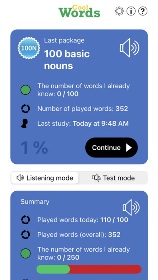 With this application you listen to the pronunciation of words spoken by a native speaker. You can verify for yourself if you know the word.
