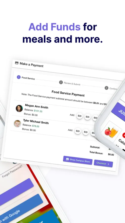 * Monitor your child's cafeteria account by making payments, viewing purchase history, and receiving low balance alerts