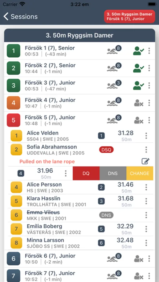 - Mark swimmers as DNS