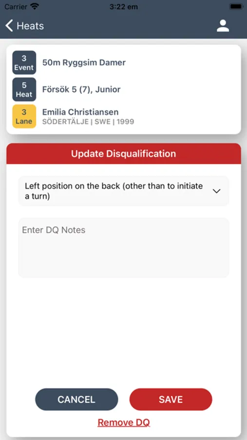 - Add Disqualifications to swimmers