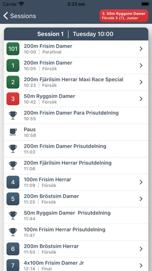 - See time schedule and event order of each session
