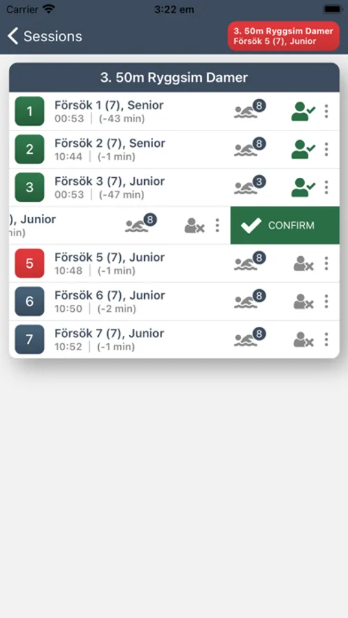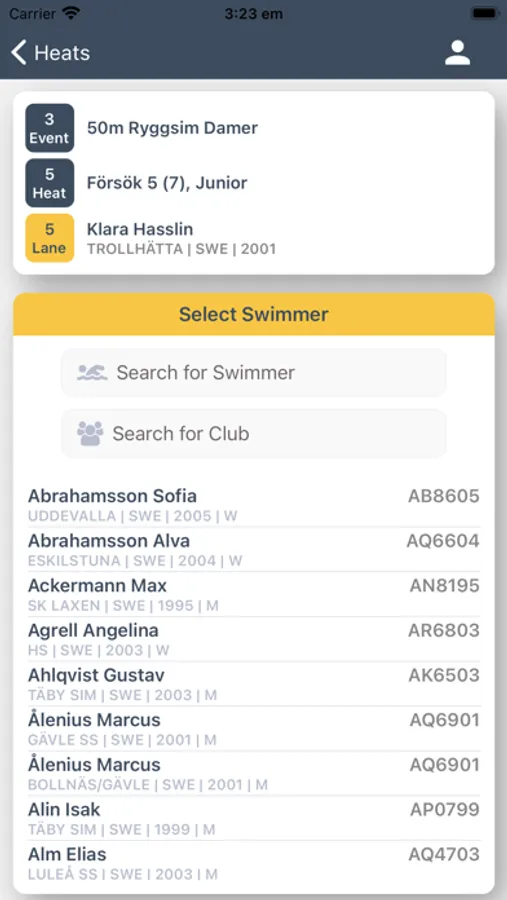 With Referee Swimify the referee has the following functionality in the app: