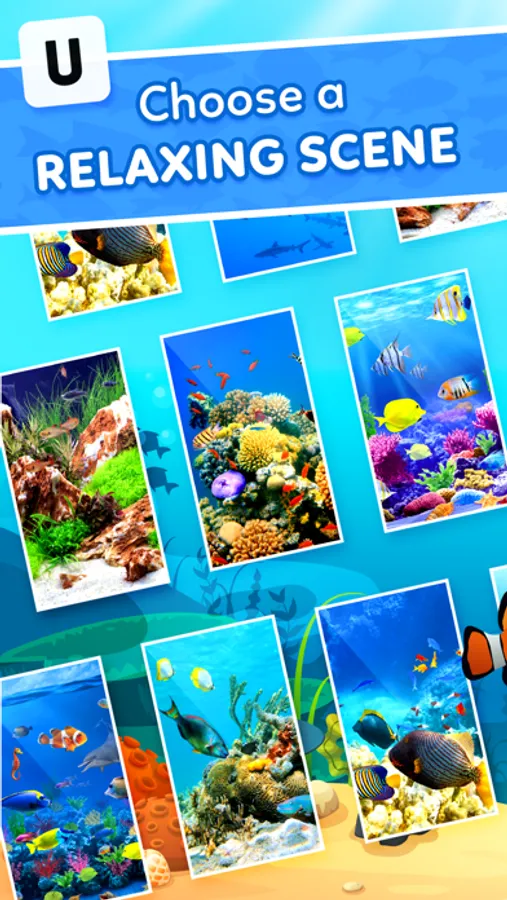 Enjoy calming underwater scenes that evolve as you play! Create the perfect virtual escape by completing puzzles, earning coins, and finding colorful fish to inhabit your ocean!