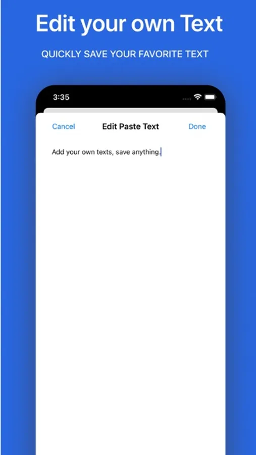 Copy & Paste frequently used text with Paste Pro. Save frequently used text snippets on your own pasteboard, access your text quickly with this keyboard.