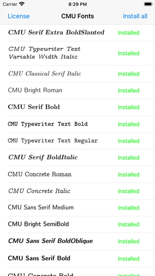 Font Installer for CMU Screenshots